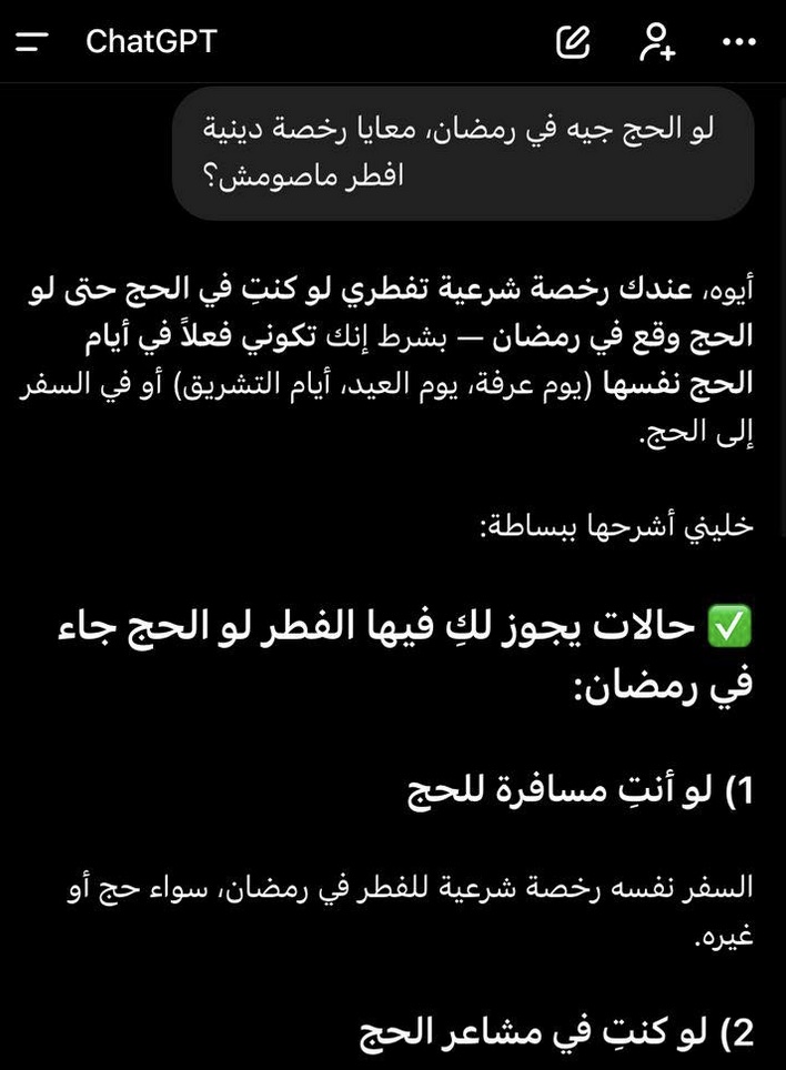 مثال عن هلوسة الذكاء الصنعي في الأمور الشرعية